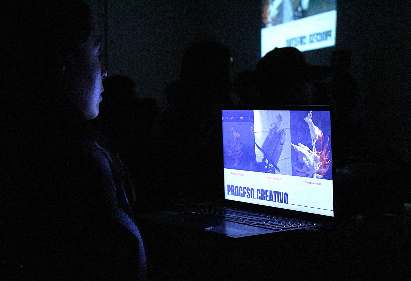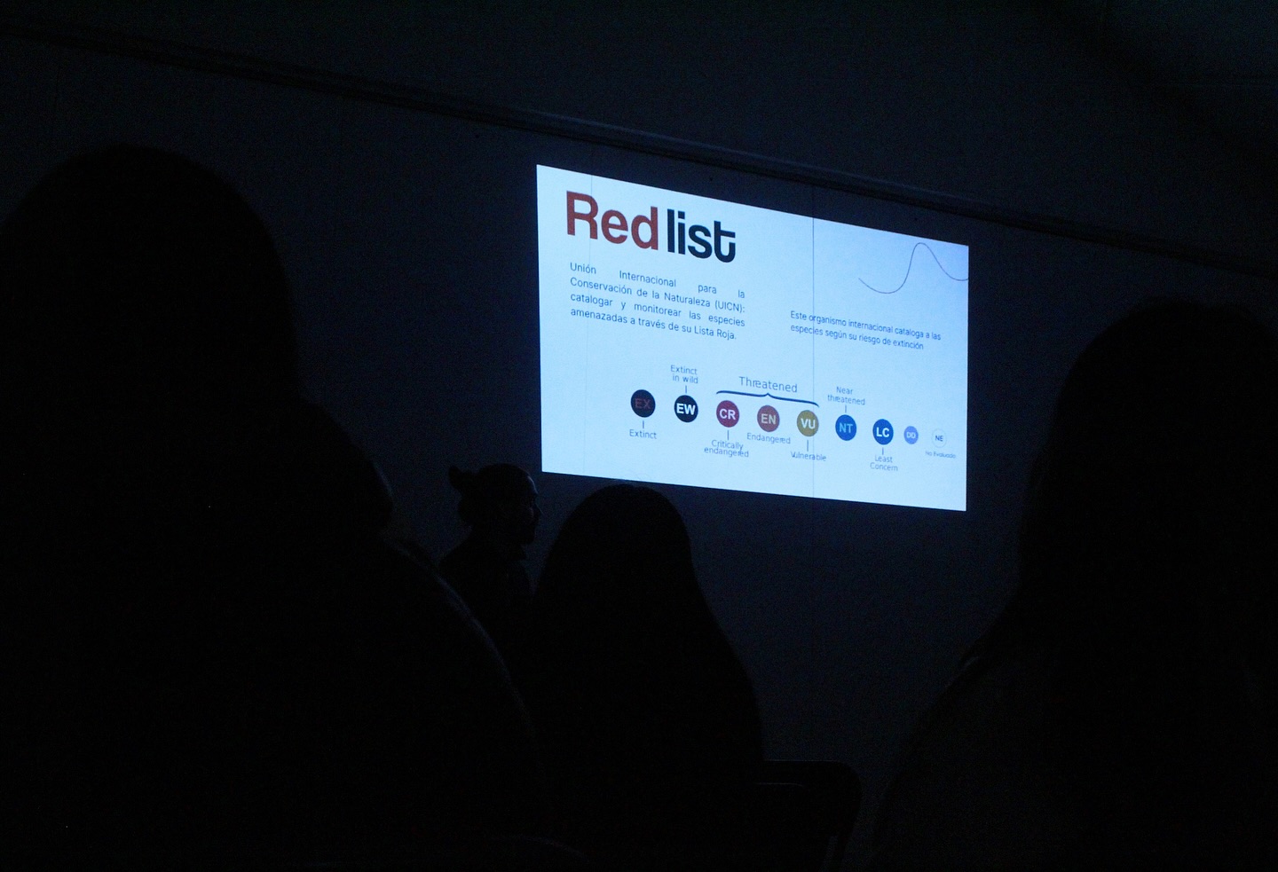 La actividad comenzó con una charla a cargo del biólogo marino Felipe Gamonal, coautor de la muestra junto a la científica y educadora ambiental Rocío Barrios. En ella, nuestros estudiantes conocieron el proceso creativo y científico detrás de esta experiencia sensorial, que une arte, ciencia y conservación para visibilizar especies chilenas en peligro de extinción.